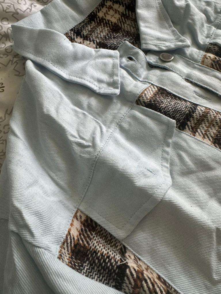 Women Denim Jackets Oversized Women Jean Denim For Dresses Long Sleeve Plaid Coat with Flap Pocket
