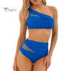 This two-piece bikini swimsuit set includes a top with removable breast pads and no underwire support, along with swim trunks featuring an elastic waist and mesh splicing decoration.