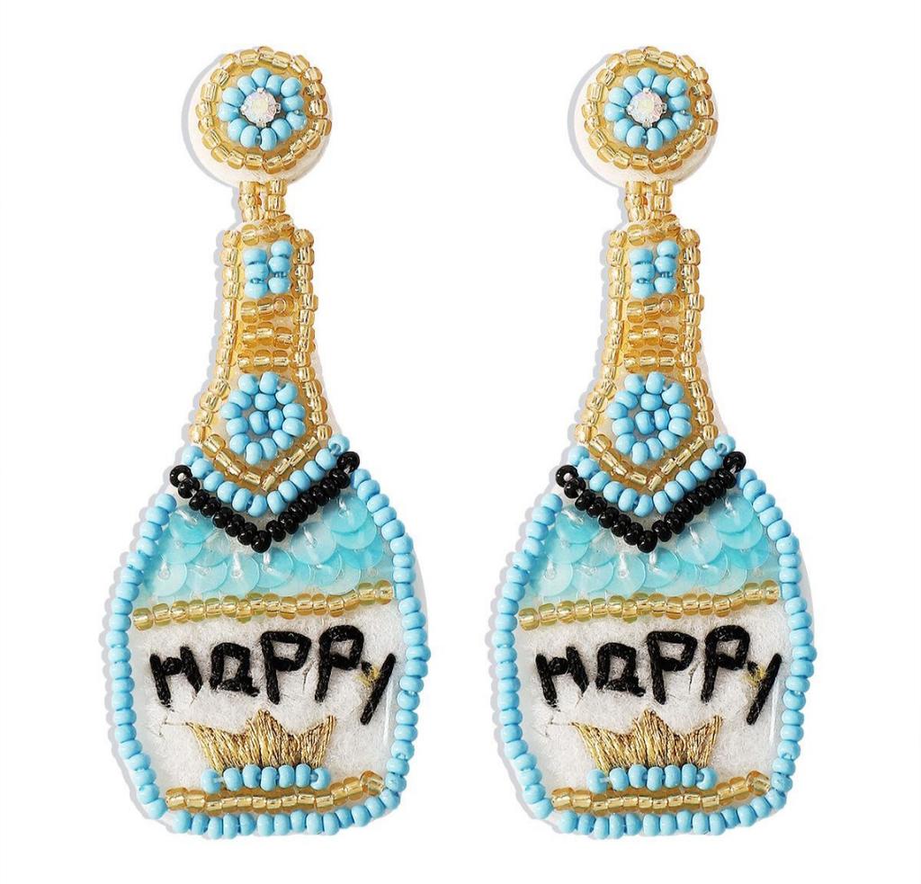 Fun and Quirky Whiskey Bottle Earrings, Happy Crown Shiny Ear Drops for Women