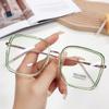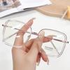 Fashion Anti Blue Light Glasses Large Square Metal Transparent Frame Women Computer Gaming Eye Protection Plain Spectacles