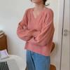 Knitted Heart Pattern Women Sweater Sweet Loose Short Pull Pullover Simple Casual Style V-neck Long Sleeve Top Korean Fashion