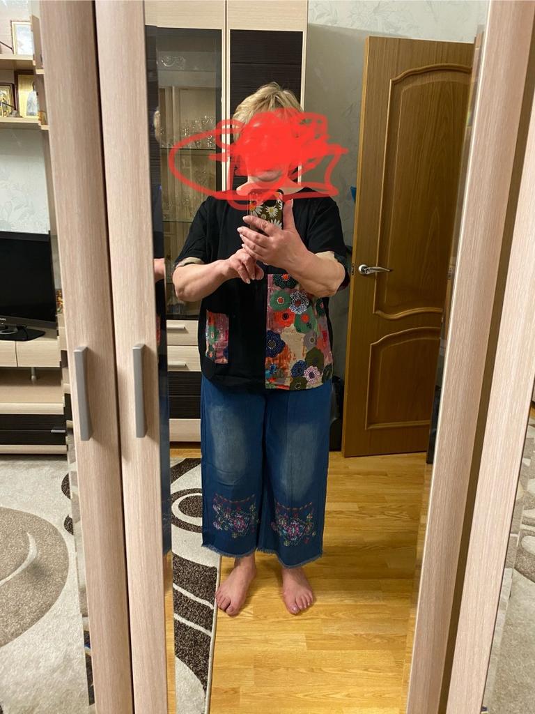 Retro Ethnic Style High-waist Embroidered Jeans Women's Spring and Autumn Loose Wide-leg Pants