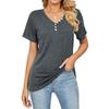 Summer Women's T-Shirt Solid Colour Button Loose V-Neck Short Sleeve Top