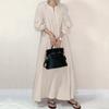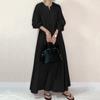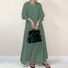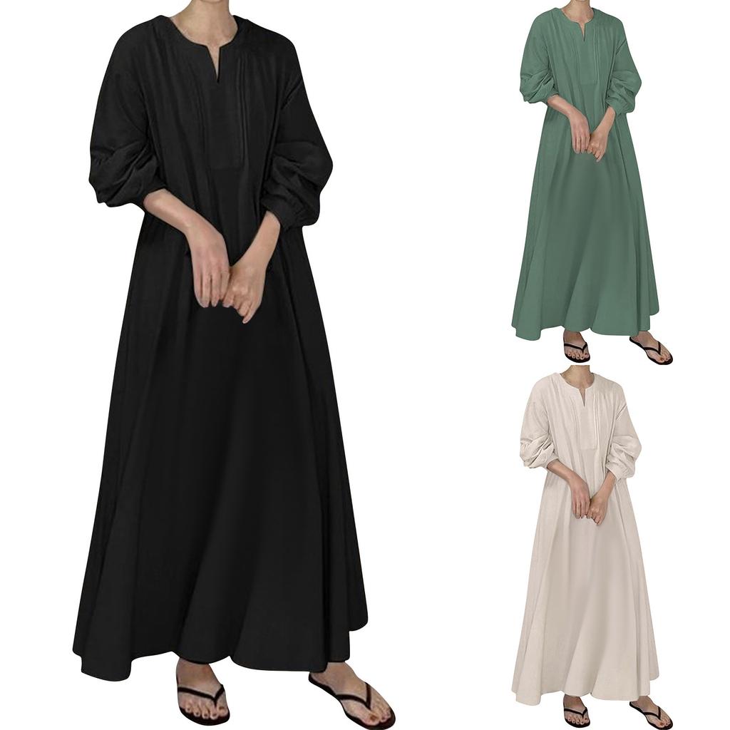 Women's Fashion Cotton Linen Lazy Style Loose Round Neck Long Knee Length Ethnic Shirt Dresses
