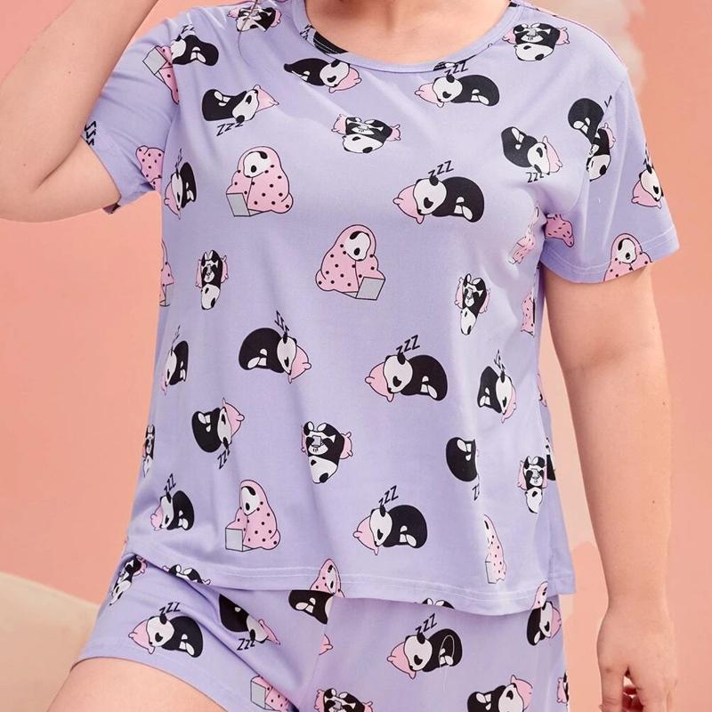Plus Size Pajamas Women's Short Sleeve Round Neck Loose Homewear