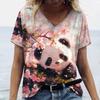 Oversize Women's Clothing Tshirt Cute Panda Woman Clothing Casual V-Neck Short Sleeve T-Shirts Pullover Trend Summer Streetwear
