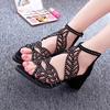 New Style Women Summer Hollow Out Faux Leather Rhinestones Thick Heel Zipper Sandals Shoes Eur