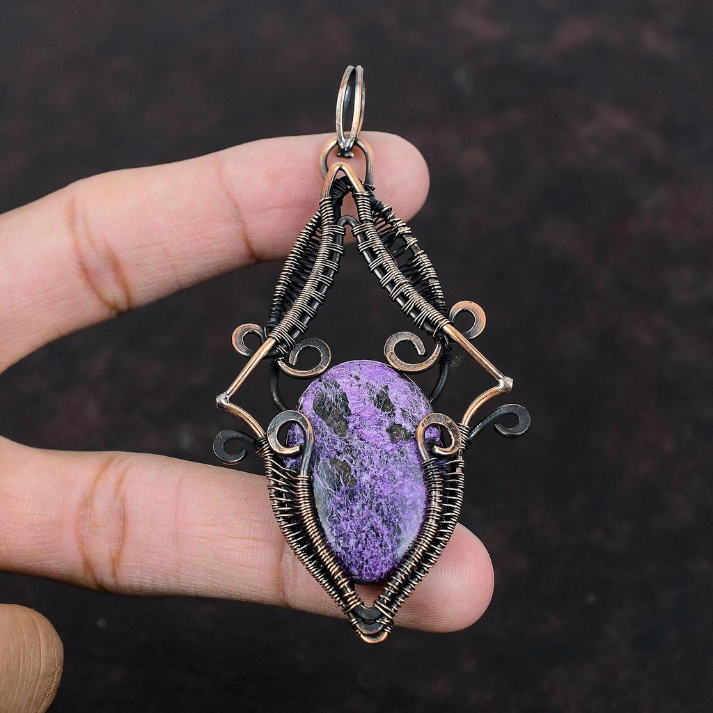 Purpurite Pendant Copper Wire Wrapped Pendant Designer Pendant Wire Wrap Jewelry Handmade Pendant Gemstone Pendant Copper Jewelry For Gift