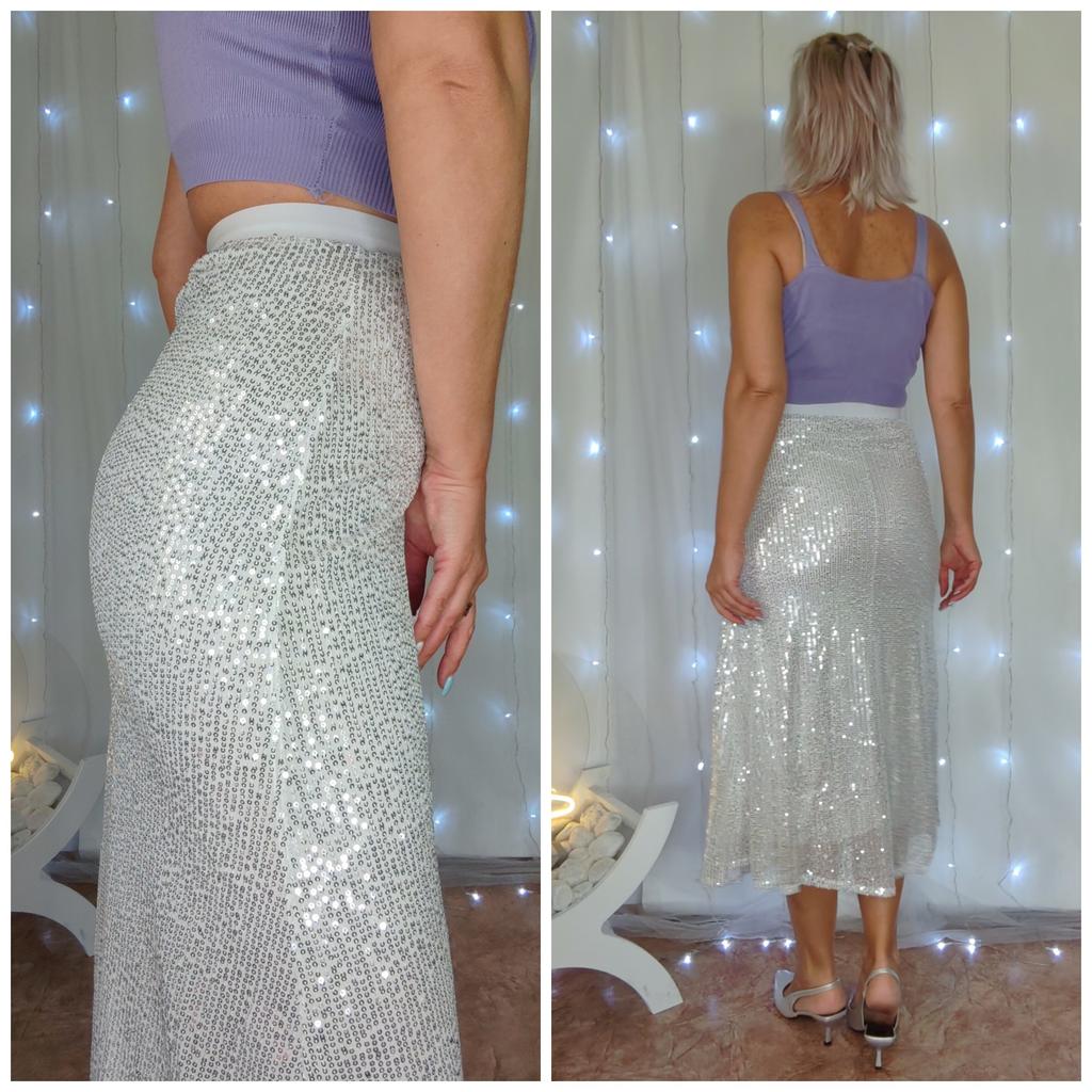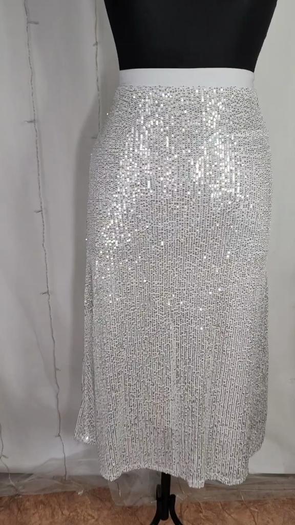 Qooth Women Korean Style Sequin Pencil Skirt Vintage Sexy Elastic Waist Party Long Hip Skirt QT2177