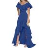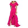 Elevate your style with this stunning Women's V-neck Ruffled Maxi Dress. The unique splicing design accentuates your figure, creating a slimming effect. Featuring a high-low hemline, this dress exudes elegance and charm.