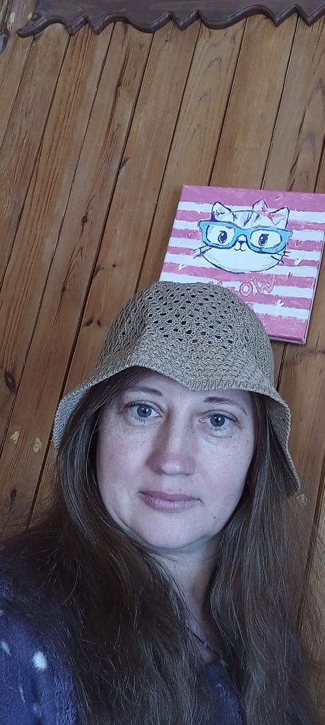 A nice, calm hat. I think it's suitable not only for the beach, but also for wearing around town in the heat.