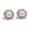 Eetit Fashion Simulated-Pearl Round Flower Stud Earrings for Women 316L Stainless Steel Elegant Charm Jewelry Accessories Gift