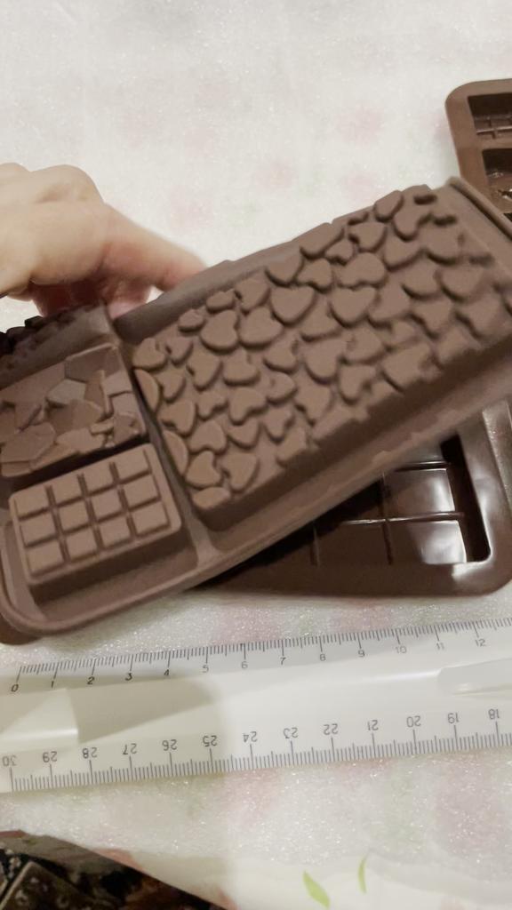 Never buy silicone molds for chocolate! The advantages of this mold for chocolate bars: clarity of the pattern, small bars, that's it! Today I was pouring chocolate into them, it's impossible to level the bottom, the silicone twists like a snake, the silicone is too soft!