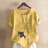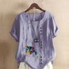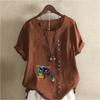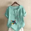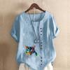 Women's Fashion Round Neck Short Sleeve T-shirt Casual Cotton Linen Graphic Shirt Leisure Owl Prined Summer Blouse Tops