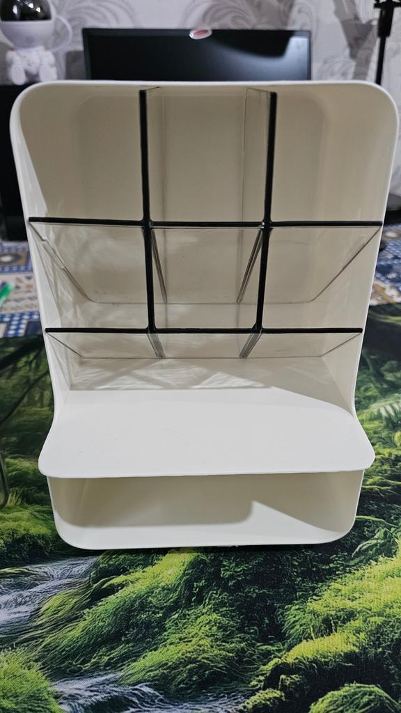 With its large capacity and space-saving design, this organizer is perfect for storing makeup, brushes, and office stationery. The sloping compartments and drawers make it easy to find what you need quickly.