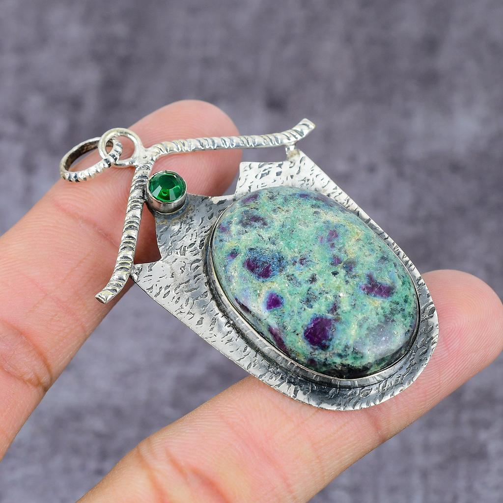 Ruby Fuchsite,Diopside Lab-Created Handmade 925 Sterling Silver Pendant 2" b3Z92