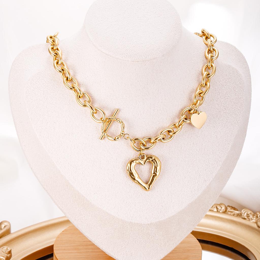 Fashion Trend OT Buckle Hollow Love Necklace Hip-hop Cool Punk Metal Pendant Clavicle Chain Women's Necklace