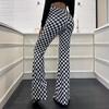 GMXIA Checkerboard Flared Pants Women's Fitness Yoga Dress High Waist Show Leg Long Tight Naked Sports Casual Street Style