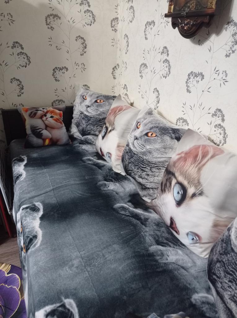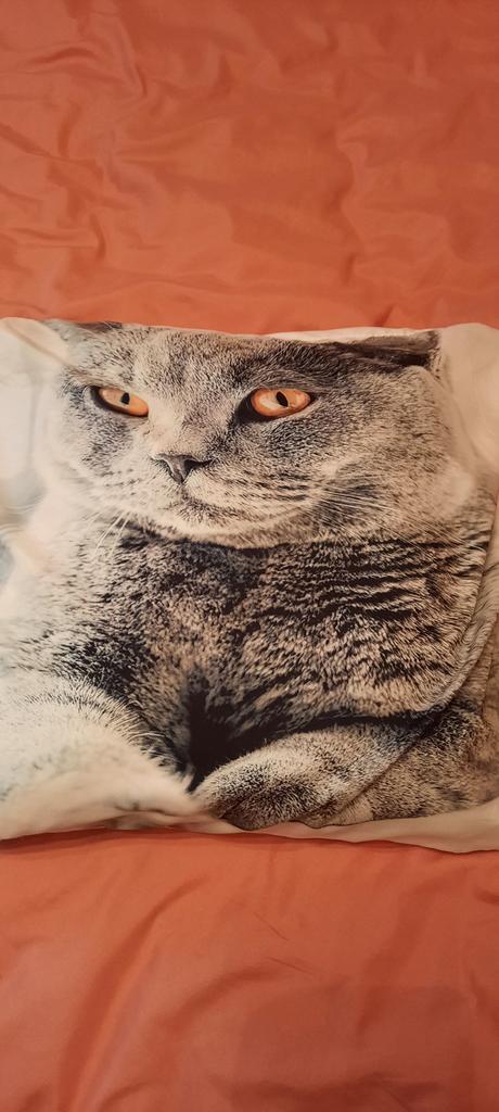 Cute cat on a white background. Zipper works easily. Fits size 70/70