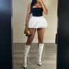 Qooth Hot Women's Mini Short Solid Color Puffy Bubble Skirt Plus Size Fashion Pleated Mini Skirt For Girls Skirts Sexy Clothes Women QT2422