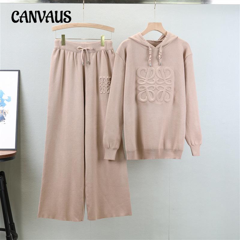 Hooded Knitted Sweater Women's Autumn Plus Size Lazy Fashion Ageing Wide-legged Pant Suit