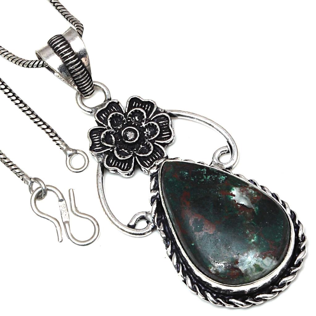 Pendant Chrysocolla Gemstone Handmade Gift For Her Silver Jewelry 2.5"