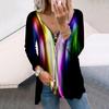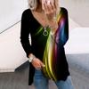 Women Autumn Gradient Colored Light Printed Long Sleeve T-Shirts Loose V-Neck Plus Size Tee Shirt Tops Comfy Blouse