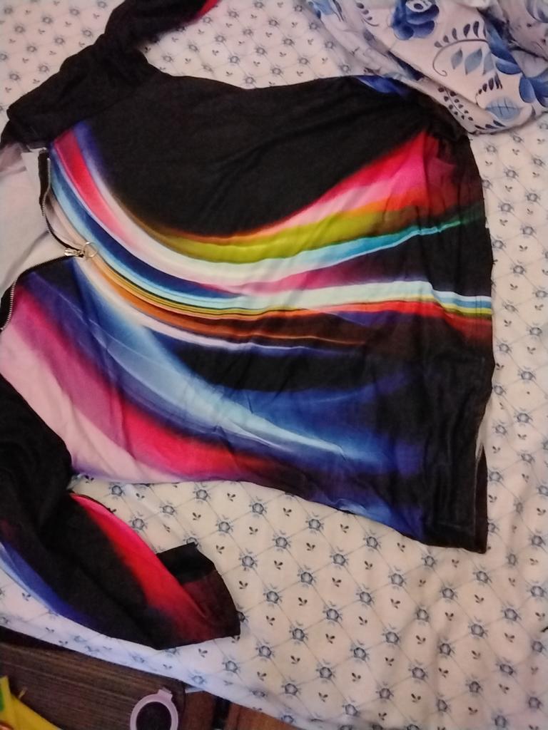 The color matched, it's not a tunic, but a short square with long sleeves, nothing in common except the color with the photo, such money is a pity