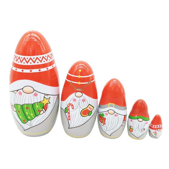 Introducing the gnome nesting doll Santa, a vibrant and beloved addition to any space. These stackable cartoon toys are crafted from natural wood and adorned with eco-friendly water-based paint, ensuring safety for all. Delight in the joy of discovery as you unveil the set's five unique sizes, each nesting snugly within the other.