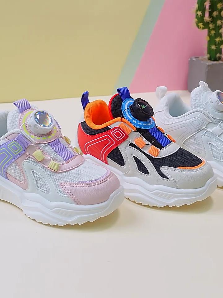 Warrior Sports Shoes Spring Autumn and Winter Rotating Buckle Casual Shoes Girls Soft-soled Breathable Running Shoes