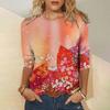 Elegance Women's T-shirts Vintage Flower Print Autumn Casual Long Sleeves T Shirt Loose O-neck Women Clothing Pullover Tops