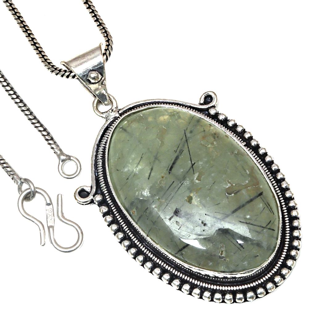 Pendant Prehnite Gemstone Handicraft Valentine'Day Gift Silver Jewelry 2"