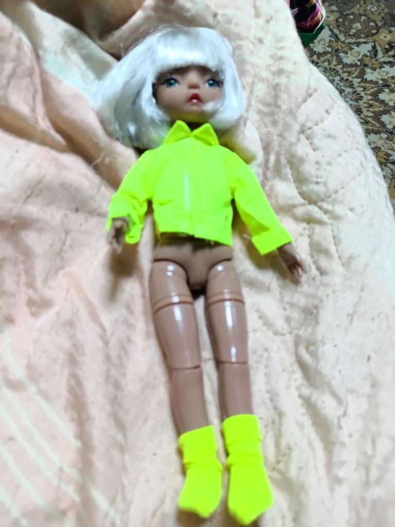 she wears with casual black shorts. she is the girl from our Cool Girl , she has a very personality, it can be said that she has exquisiteon the fashion features, beautiful purple hair, long eyelashes and blue glass eyes. all gorgeous fashion cool girl dolls.