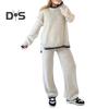 Versatile Design: This women's 2-piece casual suit features a round neck, long sleeves, and splicing for a chic yet comfortable look. The elastic waist and pockets on the pants add functionality and style, making it perfect for work or leisure activities.