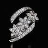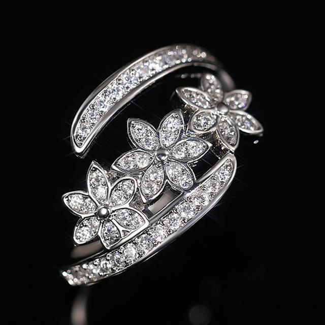 Delicate Flower Opening Adjustable Ring Female Engagement Jewelry with Dazzling Zirconia Silver Color Accessories Gift
