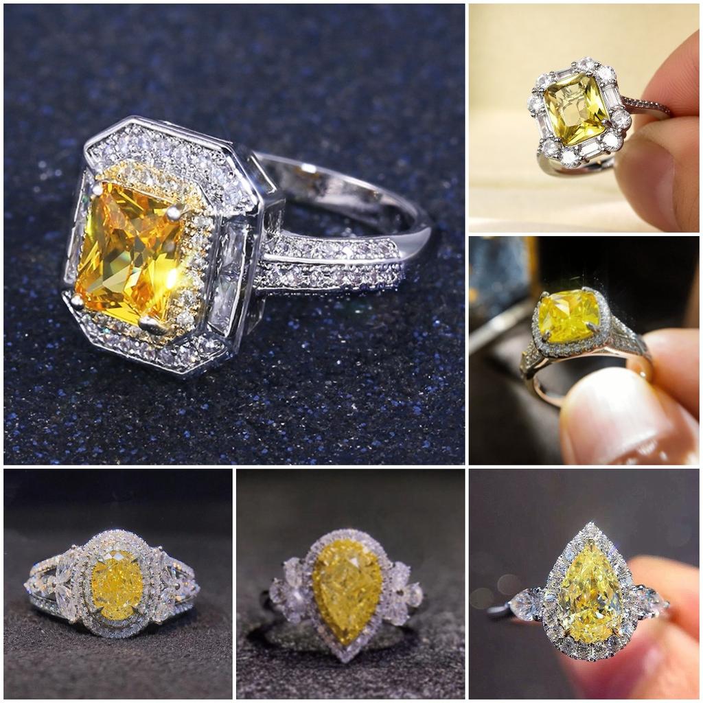 Brilliant Yellow CZ Rings for Women Gorgeous Anniversary Gift for Female Delicate Lady Luxury Accessories Party Jewelry