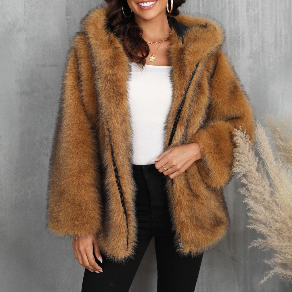 Women's Fashion Comfortable Hooded Faux Short Coat Top Plush Warm Coat