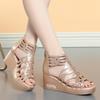 Fashion New Fashion Wedge Sandals Women 2024 Summer Shoes Elegant Rome Female Black Wedge Rhinestone Decor Hollow Heels 6.5 CM