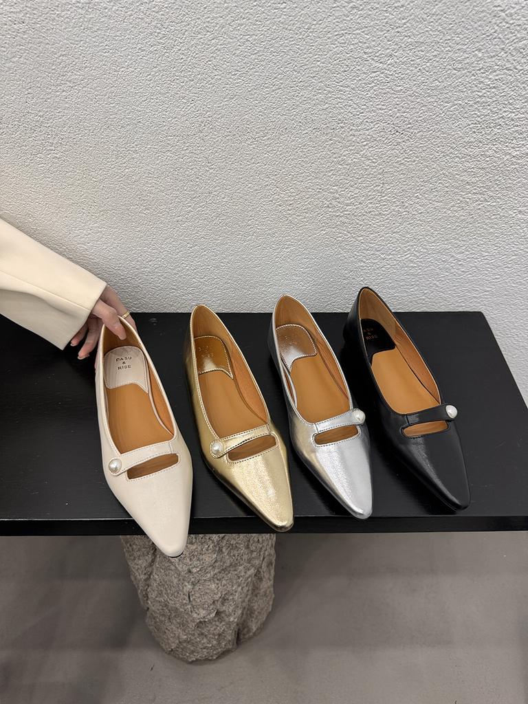 Fashion Pointed Toe Women Loafers 2024 New Arrivals Summer Dress Shoes Woman Low Heeled Black Beige Gold Silver Fashion Party Pumps Shoe
