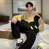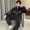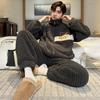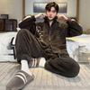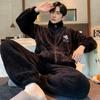 Autumn Winter Coral Fleece Men's Pajamas Set Thicken Flannel Warm Sleepwear Young Boy Loose Zipper Soft Pajama Fashion Cartoon Men Pyjama Home Wear