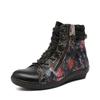Johnature Retro Oil Painting Women's Boots Handmade Ethnic Flower Lace Up Comfortable Flat Leather Short Boots