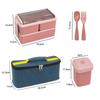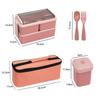 Double Layer Lunch Box For Kids School Microwave Bento Box With Fork Spoon Storage Bag Dinnerware Set Food Storage Container