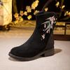 Women's Winter Warm Snow Boots Low Heels Embroidered Ankle Booties Shoes for Women Chunky Block Heeled Faux Fur Lining Walking Boots With Side Zipper