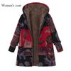 Autumn and Winter New Cotton and Linen Coat Ladies Warm Print Pocket Thick Zipper Hooded Coat