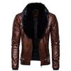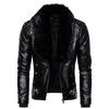 Autumn and Winter New Men's Punk Detachable Fur Collar Rivet Motorcycle Leather Jacket