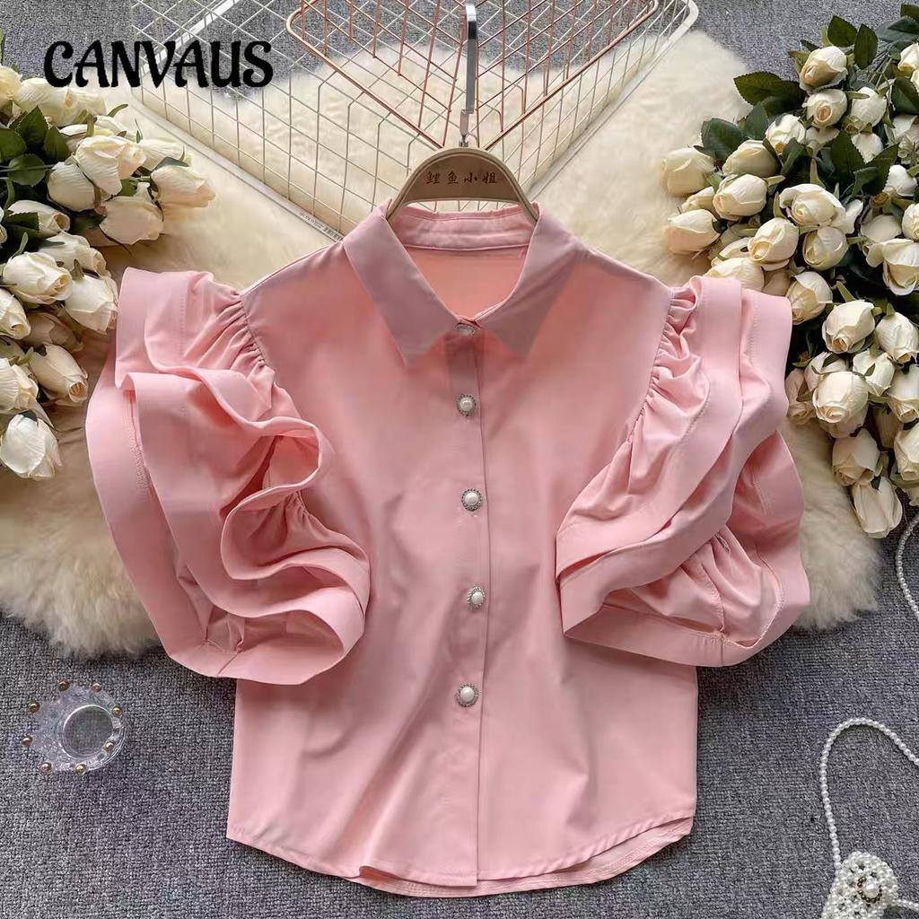 Women's French Ruffle Shirt Summer Fashion Lapel Blouse