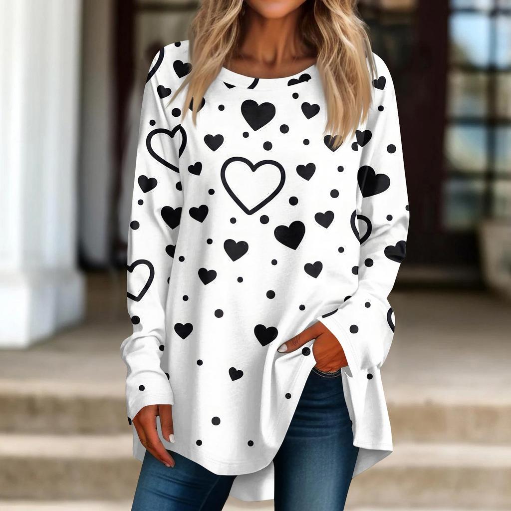 Women's Casual Plus Size Long Sleeved Round Printed T-shirt Top Pullover
