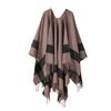 Striped Shawl Women'S Cloak Knitted Office Blanket Warm Fringed Cloak