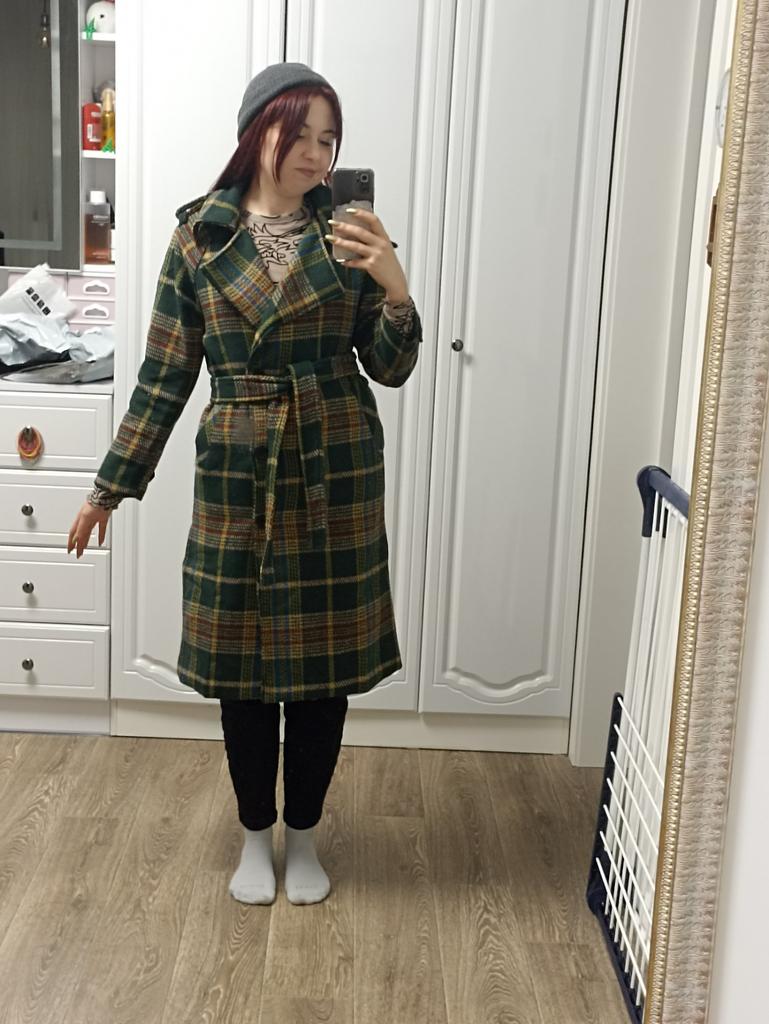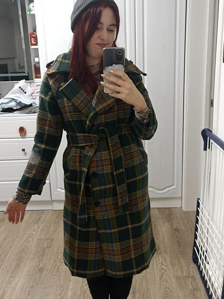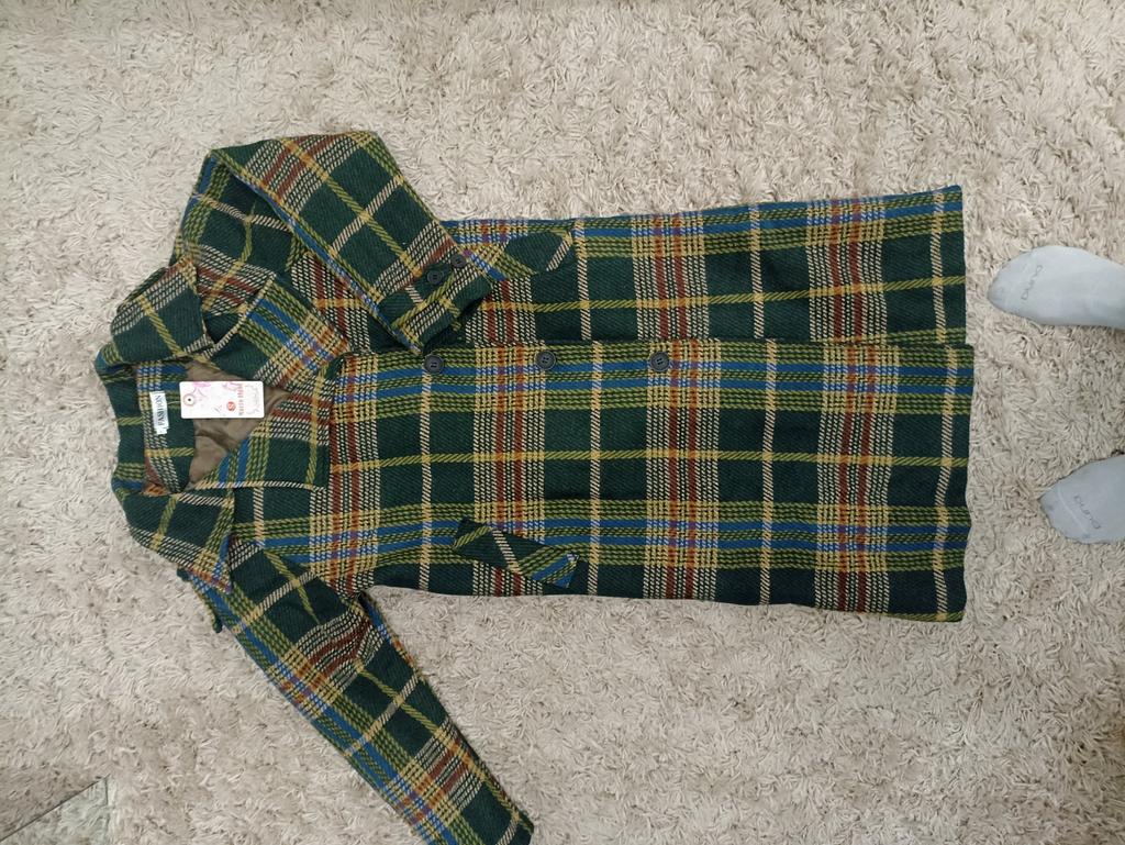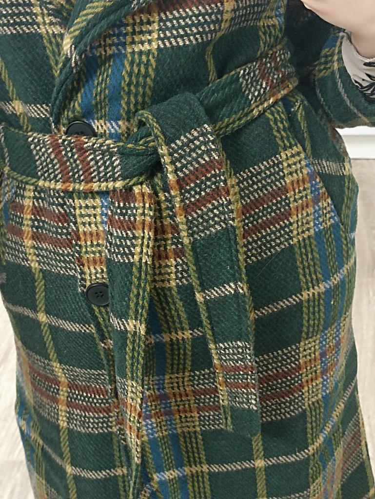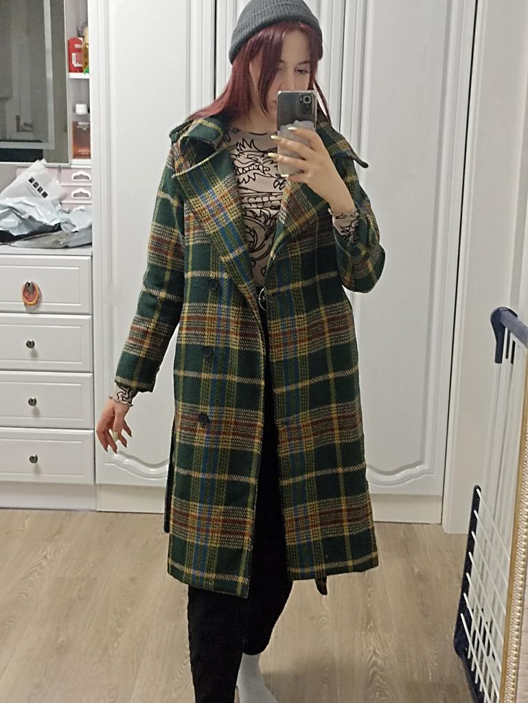 Retro Green Tartan Coat Women's Long Knee-length Autumn and Winter Korean Style Loose Thickened Woolen Coat