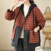 FASHION Spring and Autumn Thin Cotton-linen Cotton-padded Coat Plaid Women's 2024 New Large Size Loose Literary Hooded Cotton-padded Top Clothes